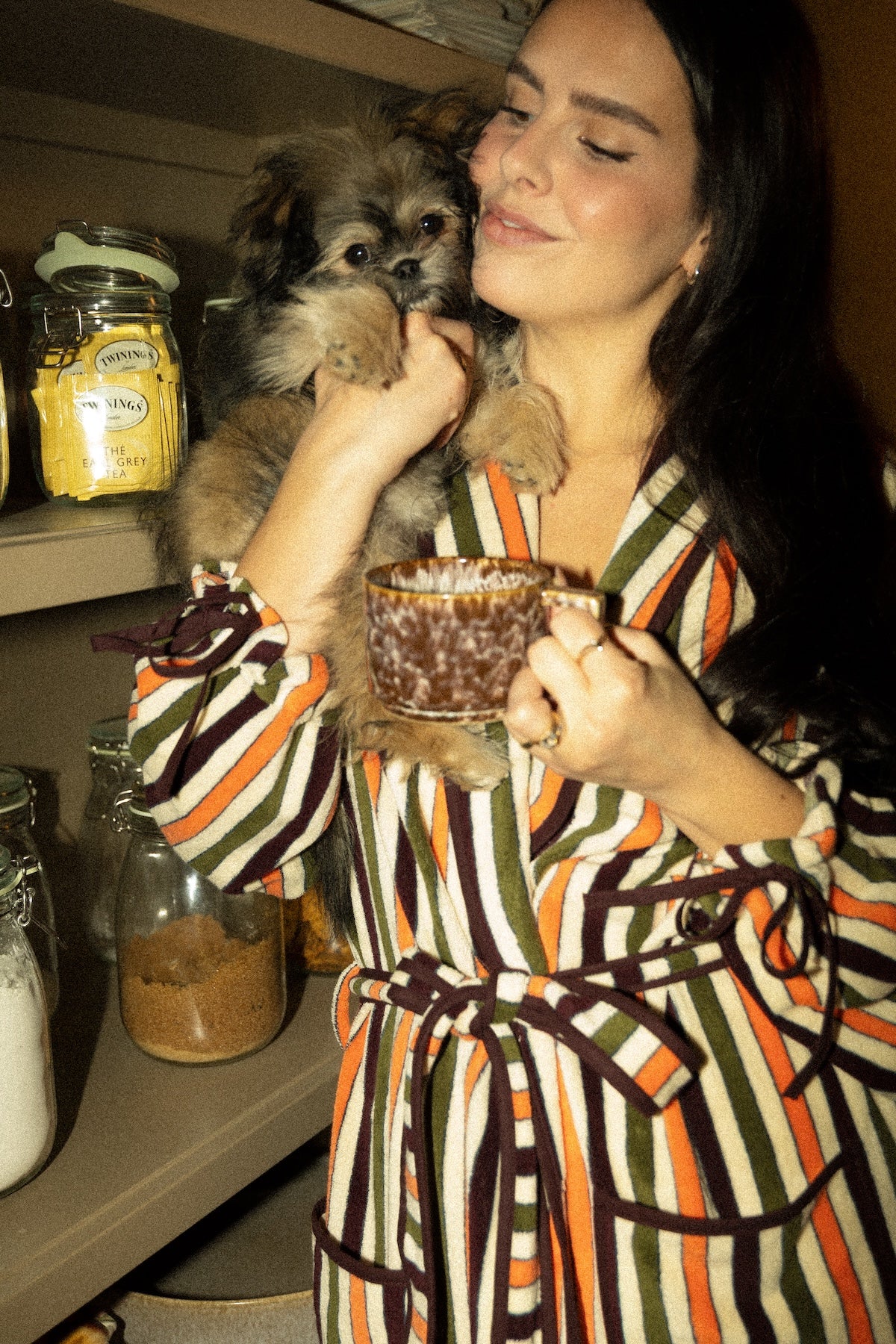 Inspired by our great grandma and her iconic striped robe, Haus Coat was thoughtfully designed at home in Canada & proudly made with 100% cotton in Portugal. Featuring our exclusive drawstring sleeves, she is as practical as she is gorgeous.